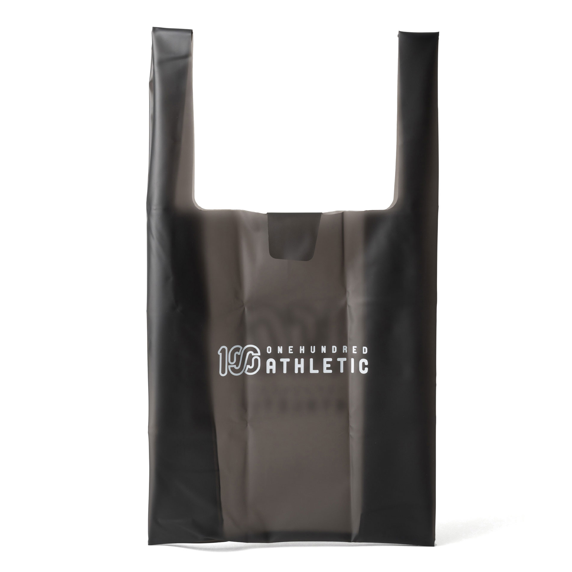 素材にTPU(熱可塑性ポリウレタン)を採用した環境に優しいバッグ。半透明でゴムのように柔らかく、軽量な上、防水性や耐油性にも優れているので、ショッパーとしてはもちろんのこと、ジムや道場、そして温泉やサウナなどでも活躍します。100Aロゴを両面にプリント。畳んでしまえる同素材のポーチが付きます。