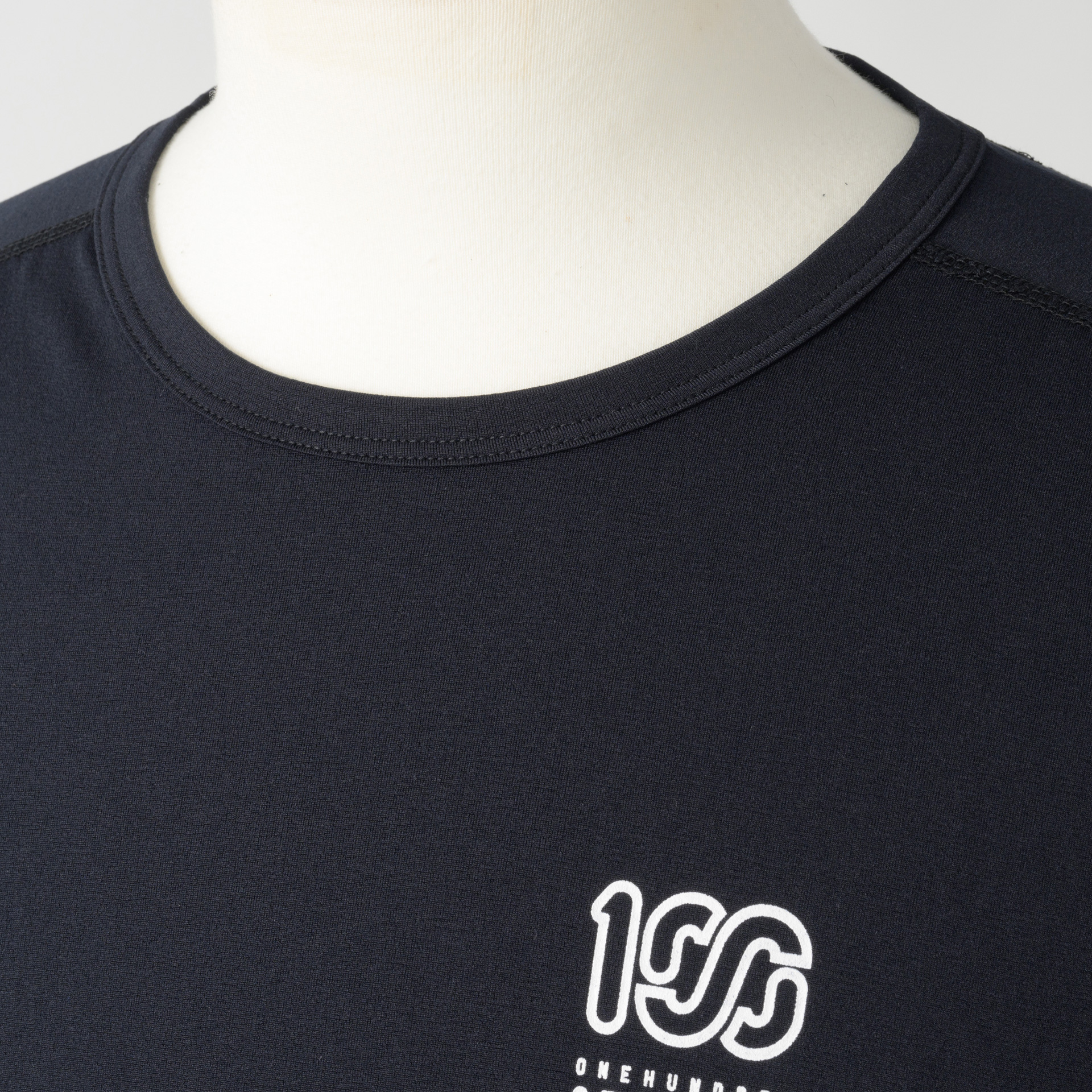 素材には高いストレッチ性を持ちながらも上質な膨らみと肌触りを併せ持つPrimeflex®/プライムフレックス®を採用。シルエットもややボックス型で、素材が持つ機能面からも、ラッシュガードをゆったりと着たい方の代替品にもなります。フロントの左胸、バックの襟下に100Aロゴをプリント。