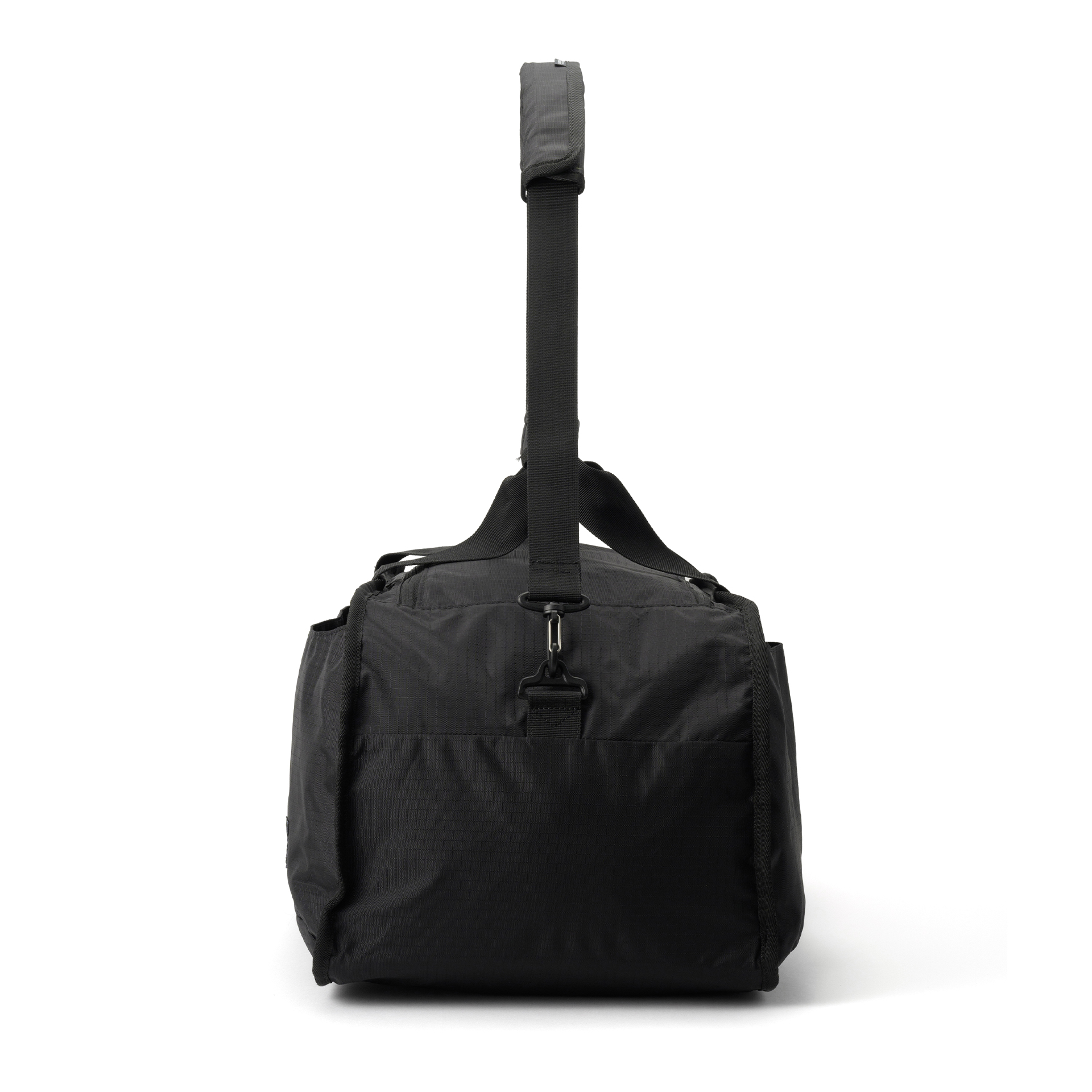 ボストンスタイルでは、ハンドストラップを備えた両サイドにスナップボタン付きポケットを配置し、ショルダーストラップ取り付け側にはファスナー付きポケットを装備。使用頻度の高い小物を取り出しやすい位置とサイズで設計されています。