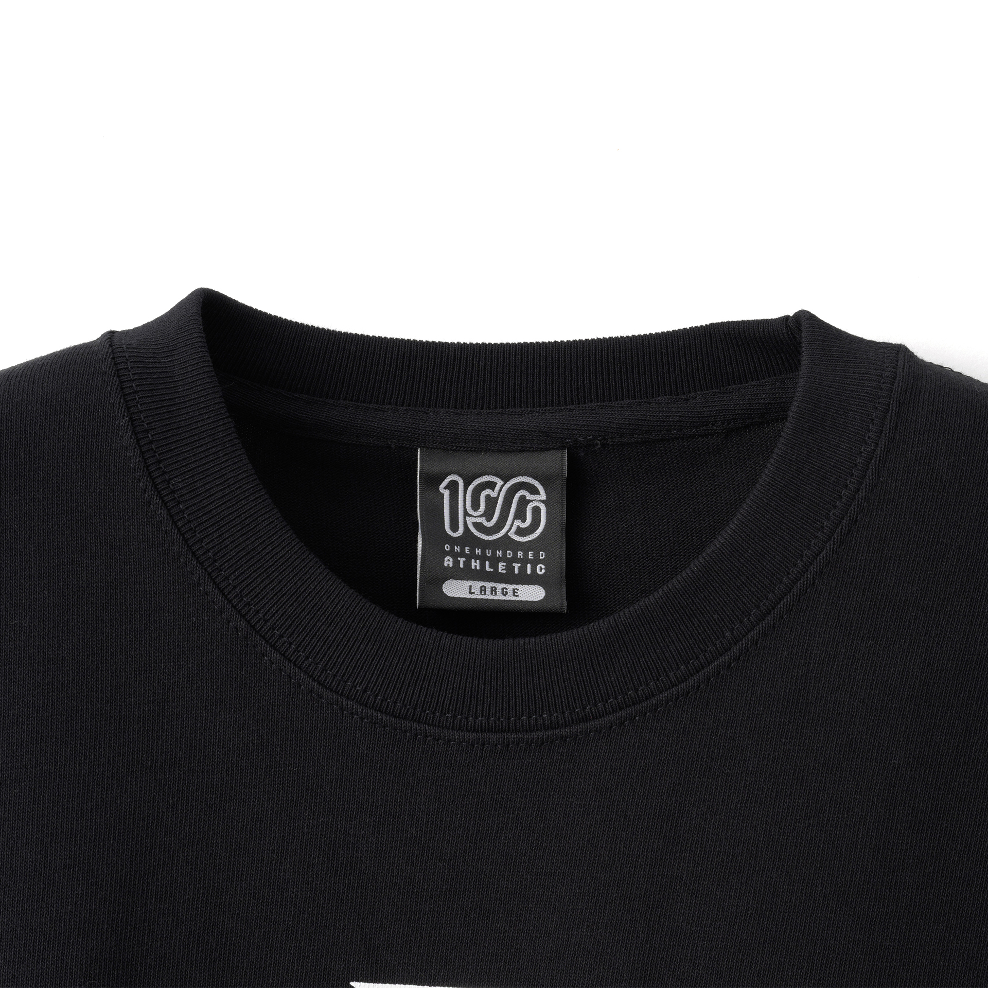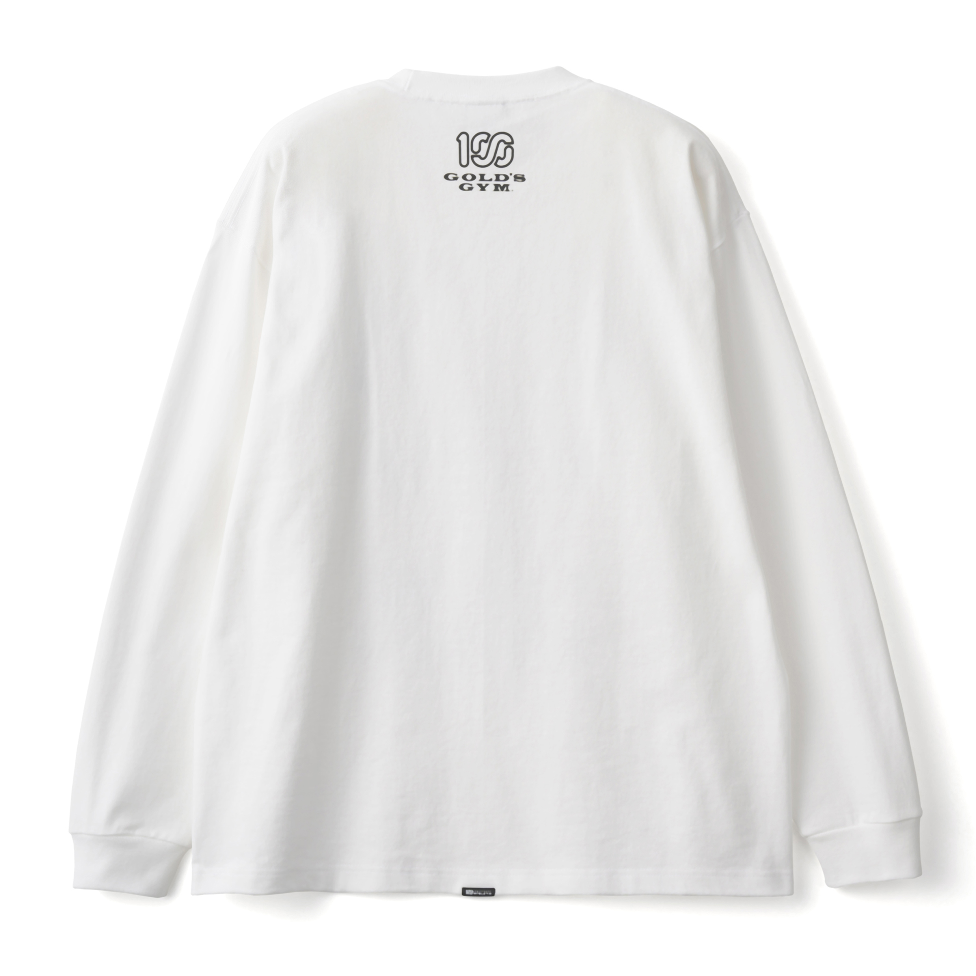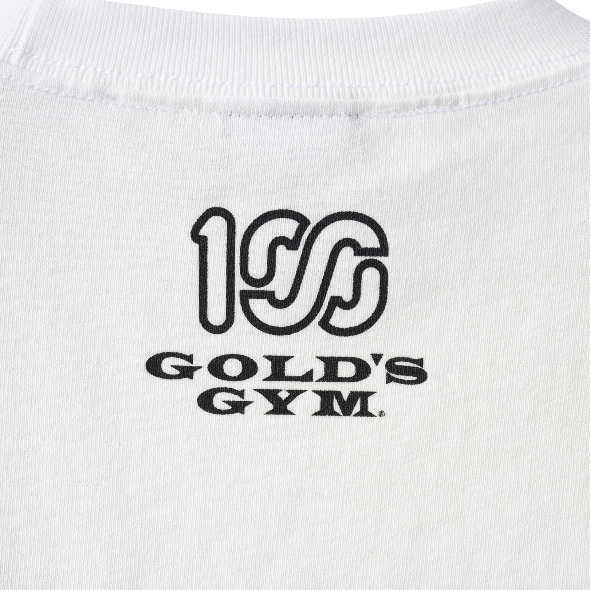 肩幅と身幅が大きめでリラックス感のあるスタイル。フロントにはGOLD'S GYM のオールドマンと100A のレクタングルロゴを組み合わせたデザイン、バックにはコラボレーションロゴをプリント。